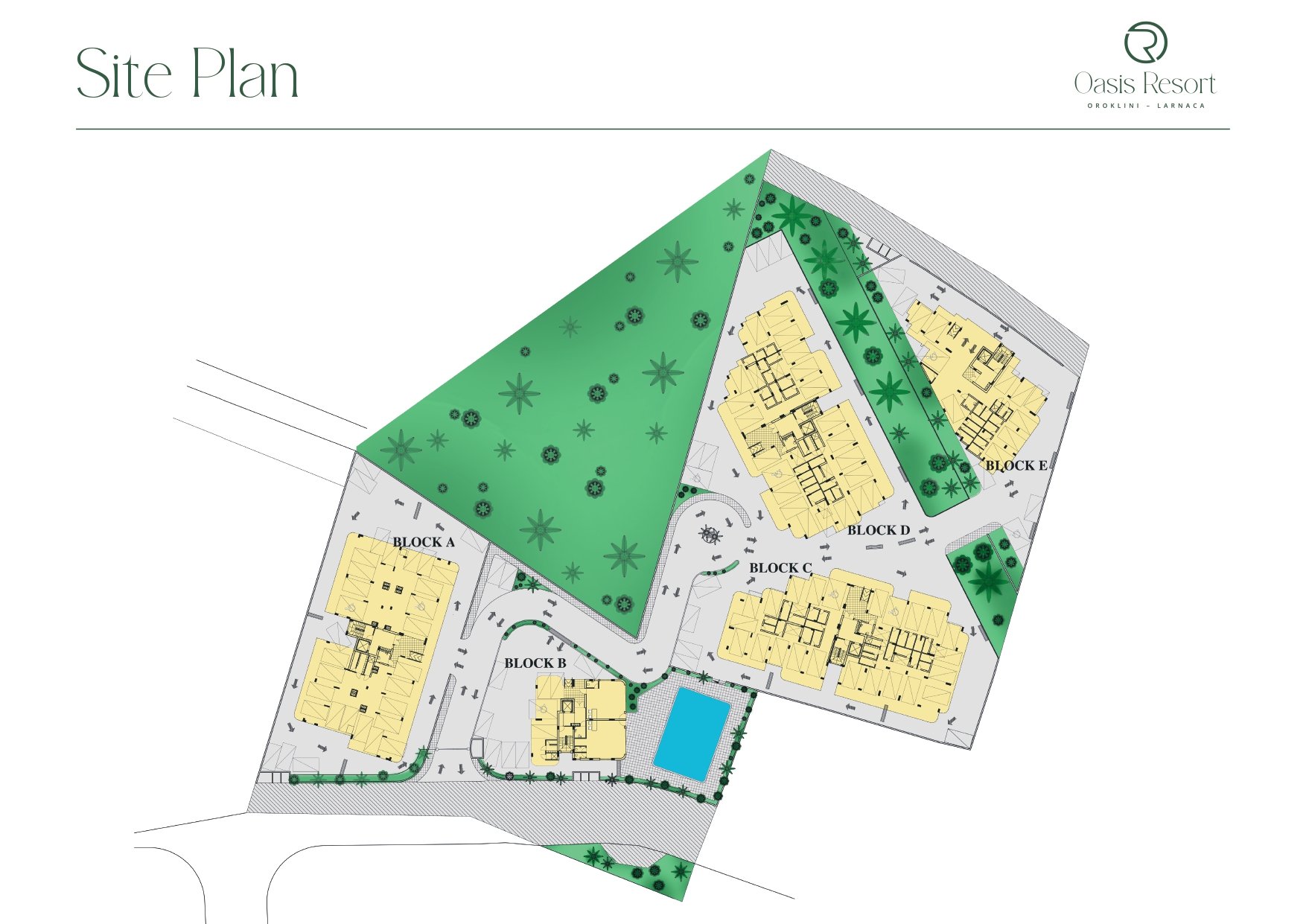 - Τοποθετημένο στο ήσυχο χωριό Ορόκλινη, σε κοντινή απόσταση τόσο από το κέντρο της Λάρνακας όσο και από το πολυσύχναστο Διεθνές Αεροδρόμιο Λάρνακας, το έργο απέχει μόλις λίγα λεπτά από τα καταγάλανα νερά της Μεσογείου.