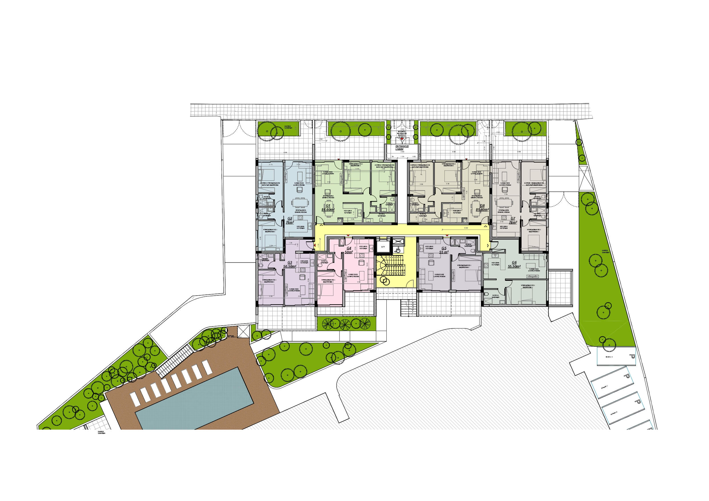 Αποτελούμενο από διώροφα κτήρια, το αποκλειστικό αυτό οικιστικό συγκρότημα περιλαμβάνει μια προσεκτικά επιλεγμένη συλλογή από 20 διαμερίσματα δύο υπνοδωματίων και 26 διαμερίσματα ενός υπνοδωματίου. Κάθε κατοικία αποτελεί δείγμα σύγχρονου σχεδιασμού, με ευρύχωρους, φωτεινούς εσωτερικούς χώρους που οδηγούν απρόσκοπτα σε ιδιωτικά μπαλκόνια, προσφέροντας την ιδανική ισορροπία εσωτερικής και εξωτερικής διαβίωσης. Φανταστείτε να ξεκινάτε τα πρωινά σας με μια αναζωογονητική βουτιά στη μεγάλη κοινόχρηστη πισίνα, περιτριγυρισμένη από όμορφα διαμορφωμένους κήπους, ή να γυμνάζεστε στο πλήρως εξοπλισμένο γυμναστήριο πριν ξεκινήσετε τις δραστηριότητές σας. Από την υπόγεια στάθμευση έως τους εκτεταμένους πράσινους χώρους, κάθε λεπτομέρεια στο Oasis Sun Gardens έχει σχεδιαστεί για τη δική σας άνεση και εξυπηρέτηση.
