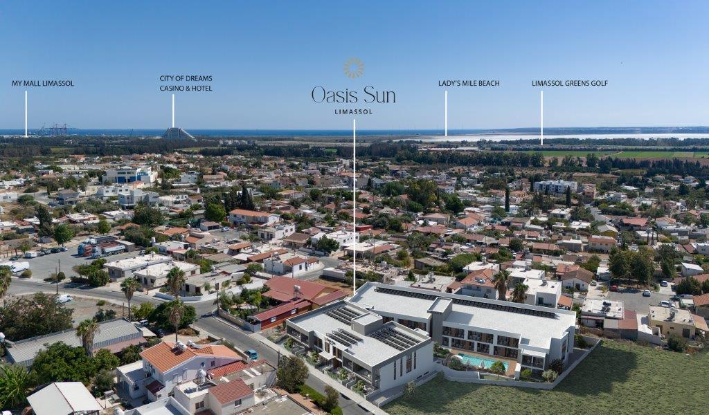 Καλωσορίσατε στο Oasis Sun Gardens – ένα έργο σε μια από τις πιο ραγδαία αναπτυσσόμενες και ανερχόμενες περιοχές της Λεμεσού, το οποίο σας τοποθετεί κυριολεκτικά στην καρδιά του μέλλοντος της πόλης. Σε κοντινή απόσταση βρίσκεται το παγκόσμιας κλάσης City of Dreams Mediterranean Resort & Casino, όπου η ψυχαγωγία, η υψηλή γαστρονομία και η χαλάρωση συναντώνται. Δίπλα, το MY MALL προσφέρει αμέτρητες επιλογές για αγορές και φαγητό, διευκολύνοντας την καθημερινότητά σας με τα πάντα μόλις λίγα λεπτά από το σπίτι σας. Με εξαιρετικά σχολεία στην περιοχή, το εντυπωσιακό γήπεδο γκολφ Limassol Greens, αλλά και εύκολη πρόσβαση στο κέντρο της πόλης και τη ζωντανή Λιμανούδα Λεμεσού, η τοποθεσία του Oasis Sun Gardens προσφέρει τον απόλυτο συνδυασμό προαστιακής ζωής και αστικής άνεσης — ένα ιδανικό μέρος για να αποκαλείτε «σπίτι», καθώς η γειτονιά συνεχίζει να αναπτύσσεται.