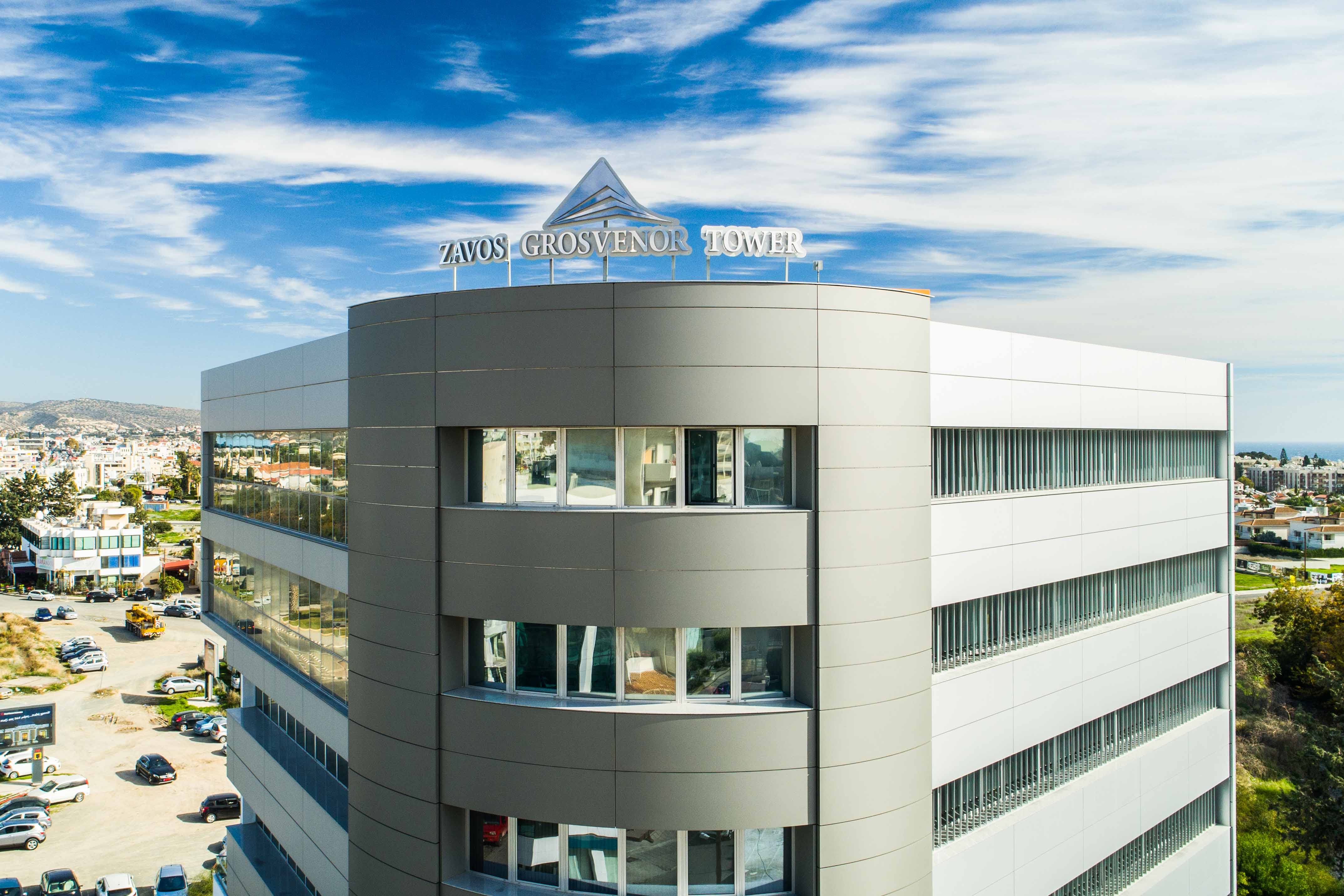 Grosvenor Tower is a modern commercial building comprising 5 floors, with one spacious office on each level. Ideally located near the center of Limassol, it offers easy access to the highway and all essential amenities, making it a prime choice for businesses seeking convenience and visibility.