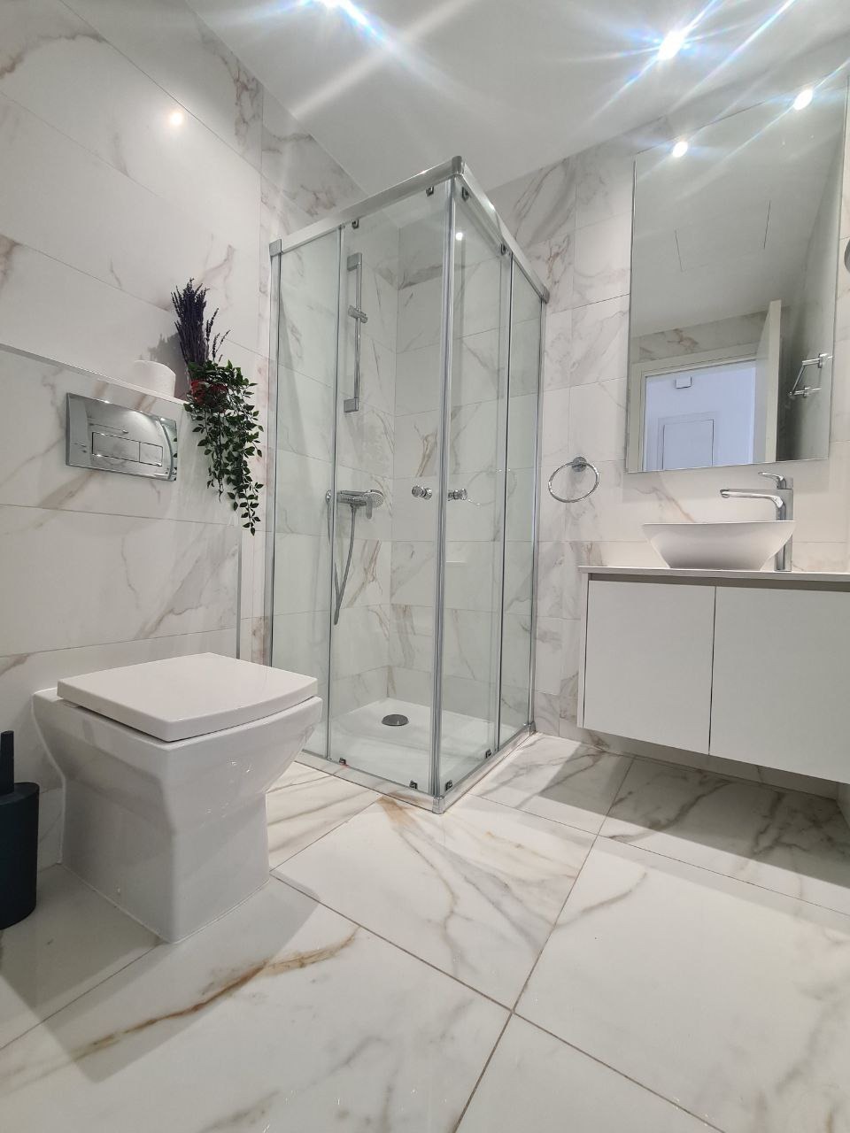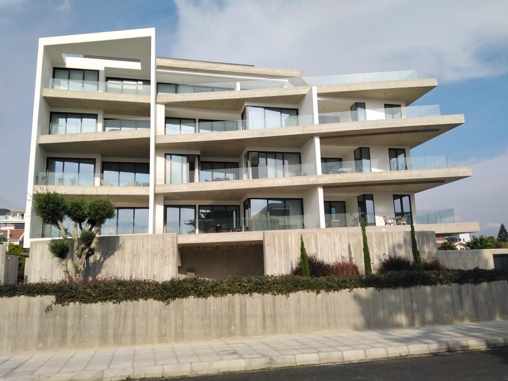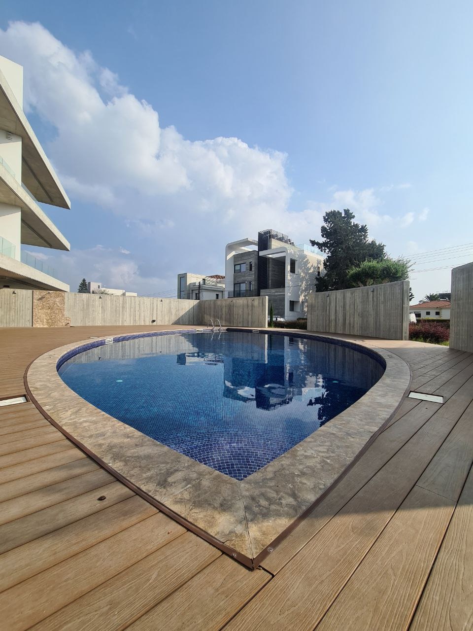 Limas Residences comprises a total of 13 apartments of varying sizes. Residents will enjoy being a stone’s throw from some of Limassol’s famed Blue Flag Beaches, as well as having all nearby amenities within very easy reach. Public and private schools, supermarkets, vibrant nightlife, upscale shops and high-end cafés and restaurants are all a short drive away. Limas Residences is an imposing, four floor development featuring stylish, contemporary architecture that emphasizes sharp angles and geometric shapes. With a glass and concrete façade in shades of dark grey, complemented by stark white walls and dark wood louvers, the building exudes an aura of majesty and luxury. Each of the 13 apartments are evenly spaced out across four floors, with four two bedroom apartments on the first to the third floor and one three bedroom apartment on the fourth floor. In this way, Limas Residences creates a sense of community and neighborliness among its residents, while also allowing a sense of privacy and security, as well as the added benefit of a generously spaced out home. Limas Residences boast luscious, landscaped gardens complete with a secluded, outdoor swimming pool and deck area, where residents and their families can kick back and relax in the privacy of their own home. Each apartment includes one parking space as well as a storage room on the ground floor. As night falls, the exterior of the building is warmly lit up with strategically placed spotlights. This, combined with the secure fencing, creates an environment that does not compromise on privacy, safety or comfort.