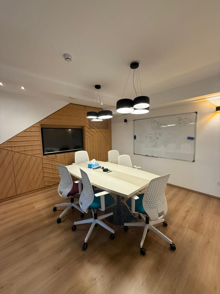 The property includes 14 dedicated parking spaces, 8 modern restrooms, and 3 fully equipped kitchens. Featuring raised flooring for adaptable cabling solutions and a VRV air-conditioning system for efficient climate control, the office is designed to deliver both comfort and productivity.
